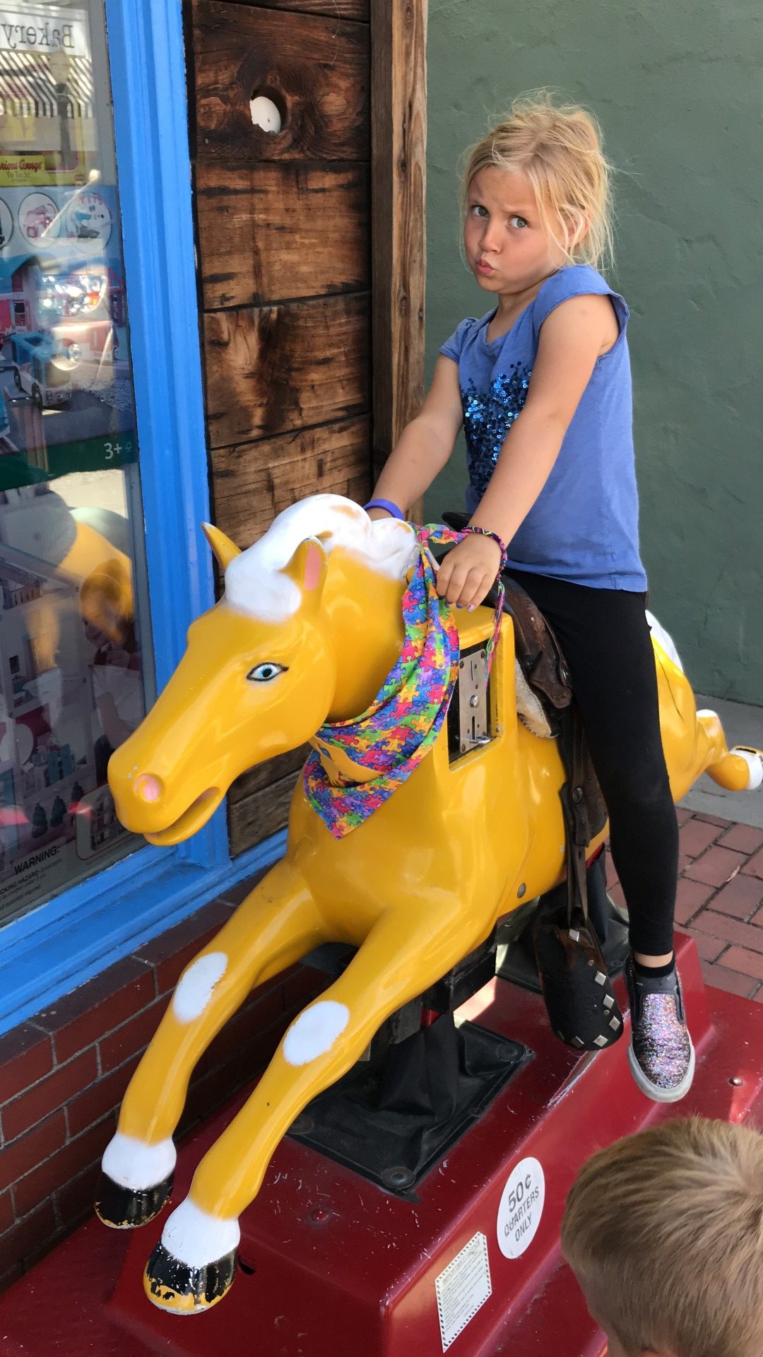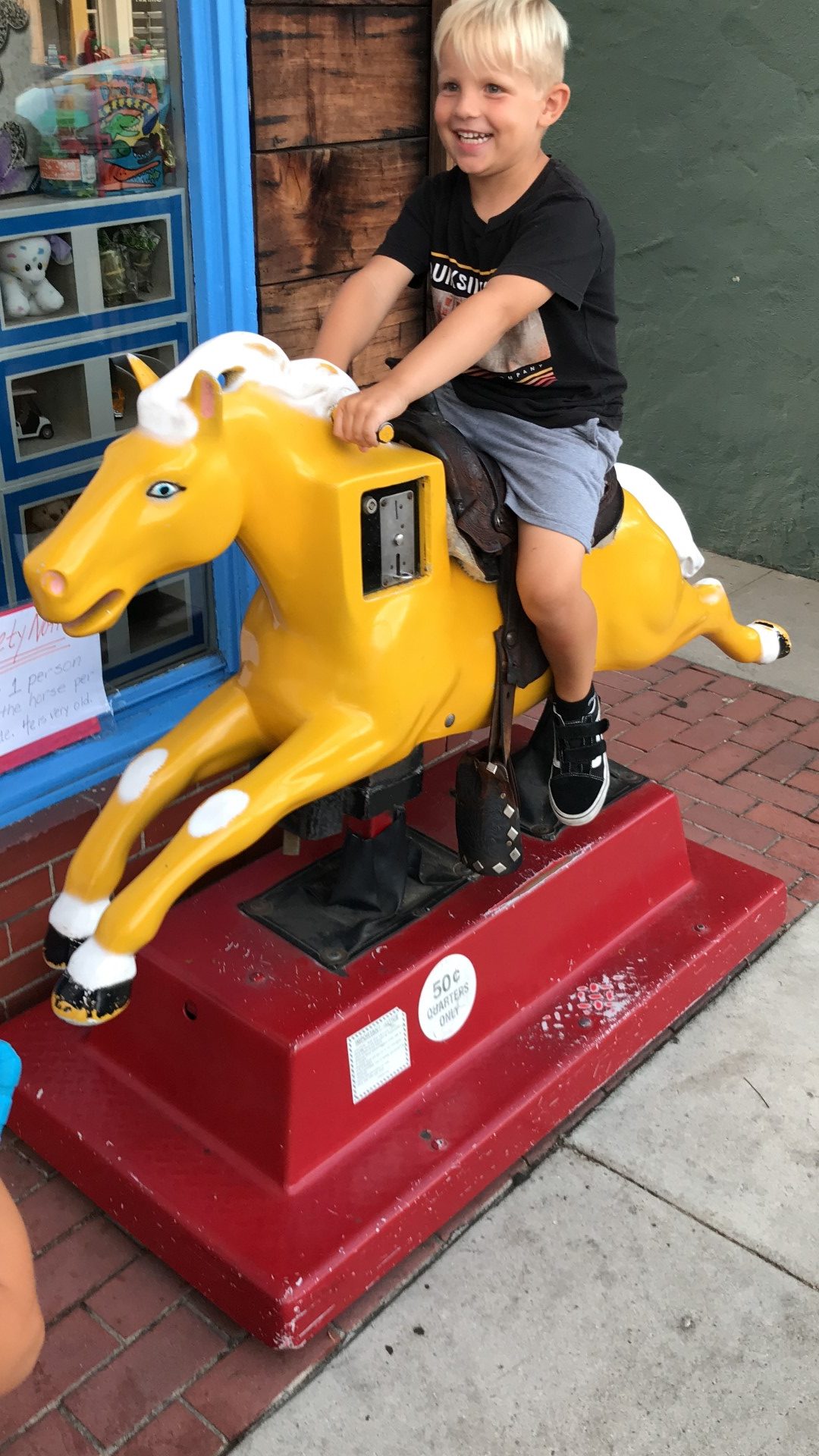 Corona Virus strikes the core of Balboa Island Merchants and Our Gang’s General Store goes out of business! What just happened? What is happening? How can this be happening?! Immediately the kids and I talked about how our office could be the perfect home for “Mustard”, the yellow coin operated horse that had been in front of the Balboa Island toy store for over 30+ years. I called the owner and left a voicemail, texted, emailed, DM’d through social media and never heard back… In hindsight, they had likely already worked the deal where Mustard would be donated to the Balboa Island Museum, where he is happily corralled today! I then jumped online to see if I could purchase another coin operated horse for our storefont… maybe a unicorn? And then I found just that!